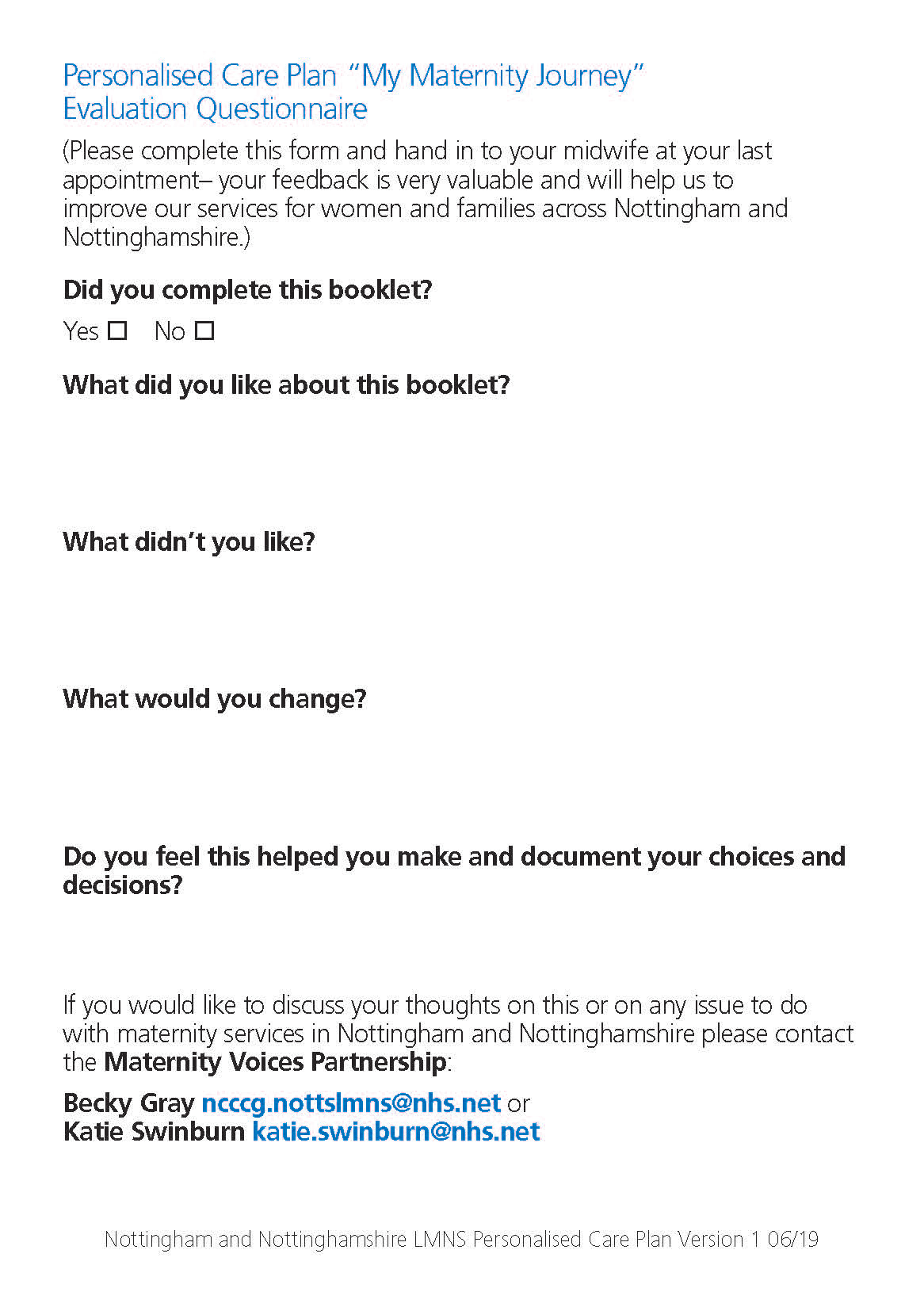 Maternity Choices - A5 booklet